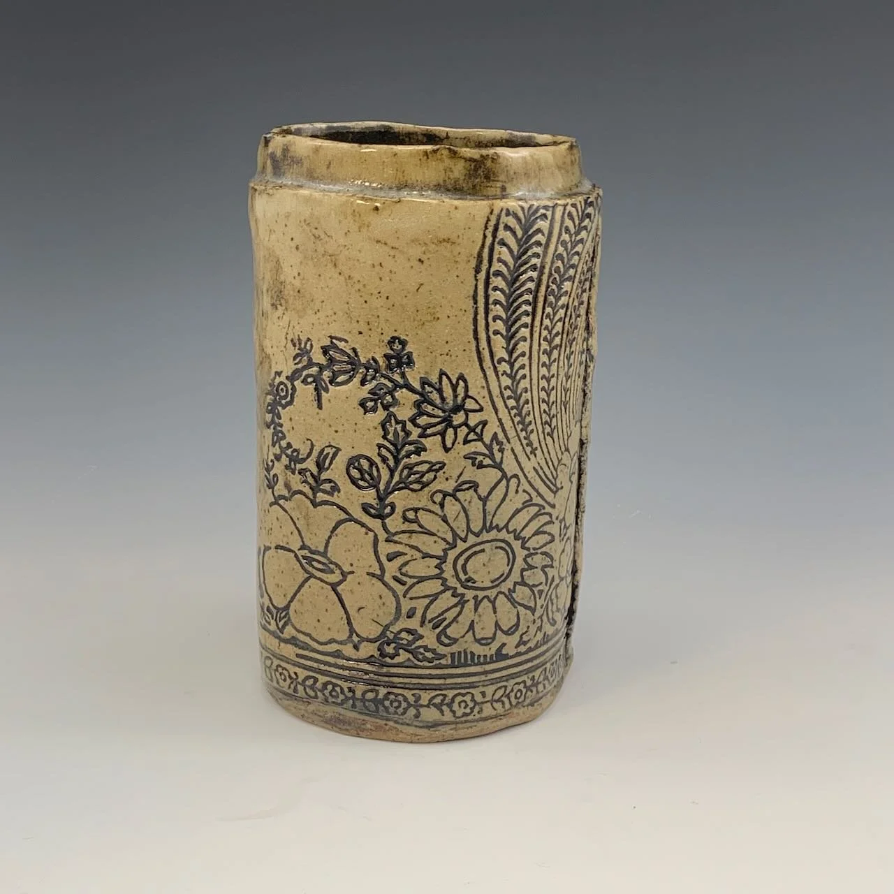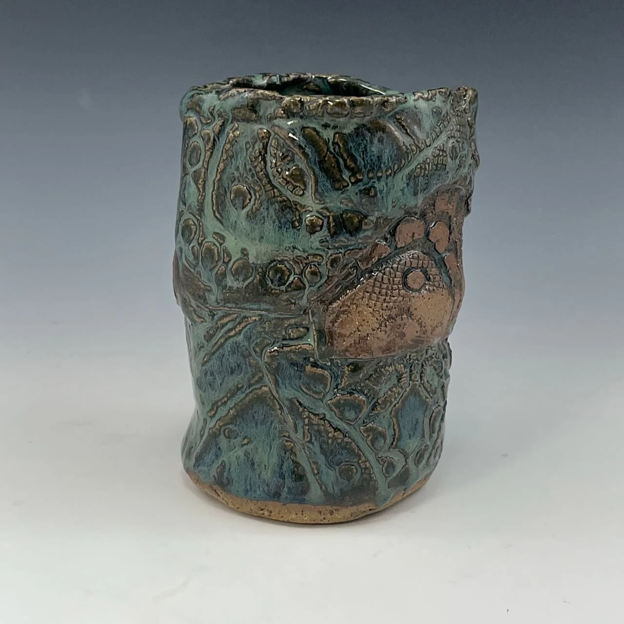 Albany Slip Slide Vase$32 Frozen Pond Too Vase5x3” • $28 Kiwi Lace Vase5.5” x 3.5” • $30 Smokey Merlot Jar/Vase4.5 “ • $38 Merlot Amphora 6” • $38 Midnight Lotus Vase $28 Jasper Obsidian Vase$28 • 5” x 4 Seamist Wave$28 • 6” tall Jasper Chocolate Vase$20 • 5” Palladium Patch Utensil Holder/Vase5” • $32 Victoria & Albert Stamp Vase $42 • 7” (SOLD) Merlot Rutile Vase$38 • 7.5” (sold) Fabric Pattern Vase$38 • 7x4” (sold)